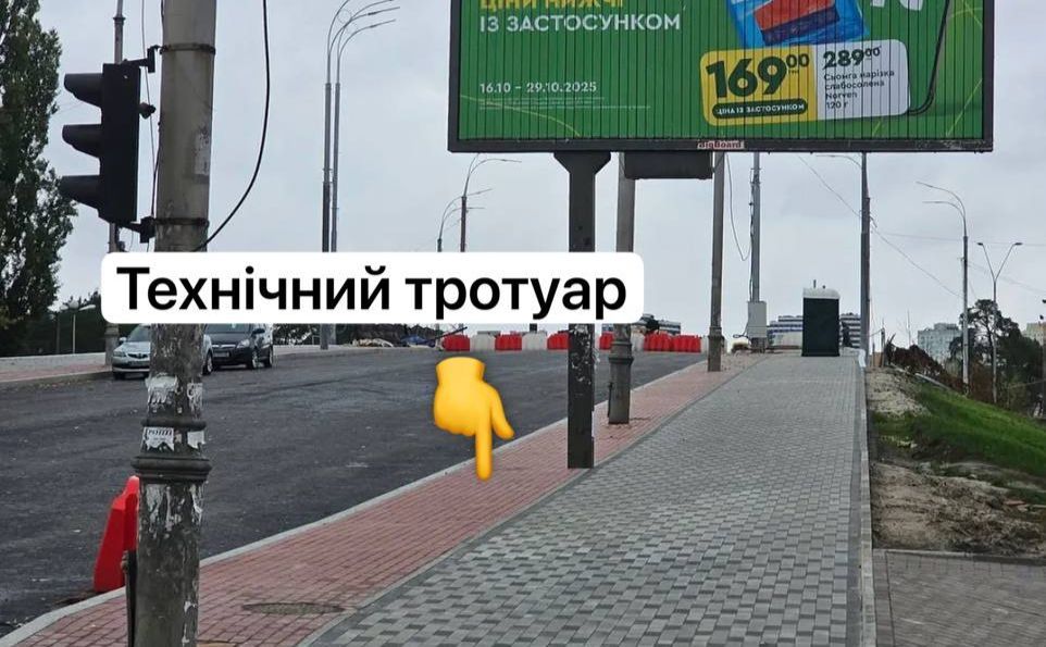 У соцмережах поширилось фото оновленого Дарницького шляхопроводу, що над коліями метро біля станції «Дарниця». В описі до світлини червону частину тротуару з опорами освітлення посередині видають за облаштовану велодоріжку. «Резонансний» контент супроводжується єхидними коментарями.